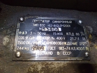 Продаем генератор синхронный ЕСС-62-4У2, IM2001, ФАЗ 3, 50 Гц, мощность 15 kVa, КПД 86 %, COS Y 0, 8, статор Yo 400 В, 21, 7 А, S1 1500 об/мин., самовозбуждение IP22, вес 244 кг, ГОСТ 183-74 КЛ.ИЗОЛ.В, 1989 г.в. Рабочее состояние, Есть документы. Есть другие предложения.
