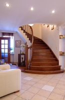 На першому рівні розташована кухня з вітальнею, кабінет, гостьовий сан вузол; на другому-три спальні, 2 сан вузла.