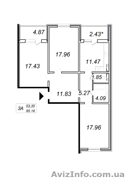 95.16/53.35/11.47 на 5 этаже – 1360788 грн.